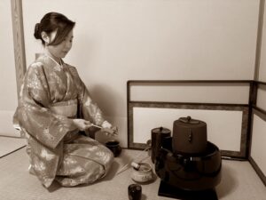 表千家流の特徴である、自然で美しい点前作法を身につけていただけることはもちろん、お稽古を通して、日本の歴史や古来からある慣習、アート、禅の思想など、幅広い世界に触れられるのが茶道の魅力です。